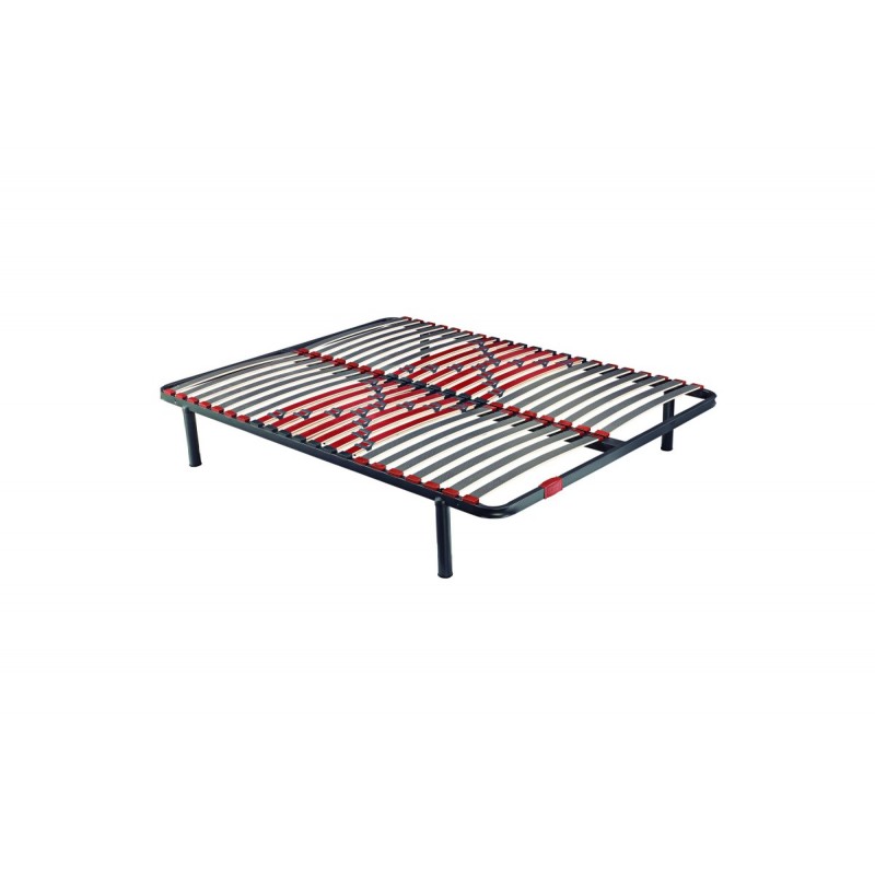 Terço central reforçado e com regulação lombar: as suas 6 ripas duplas (12 em casal) com reguladores de firmeza independentes permitem que ele se adapte a cada utilizador.